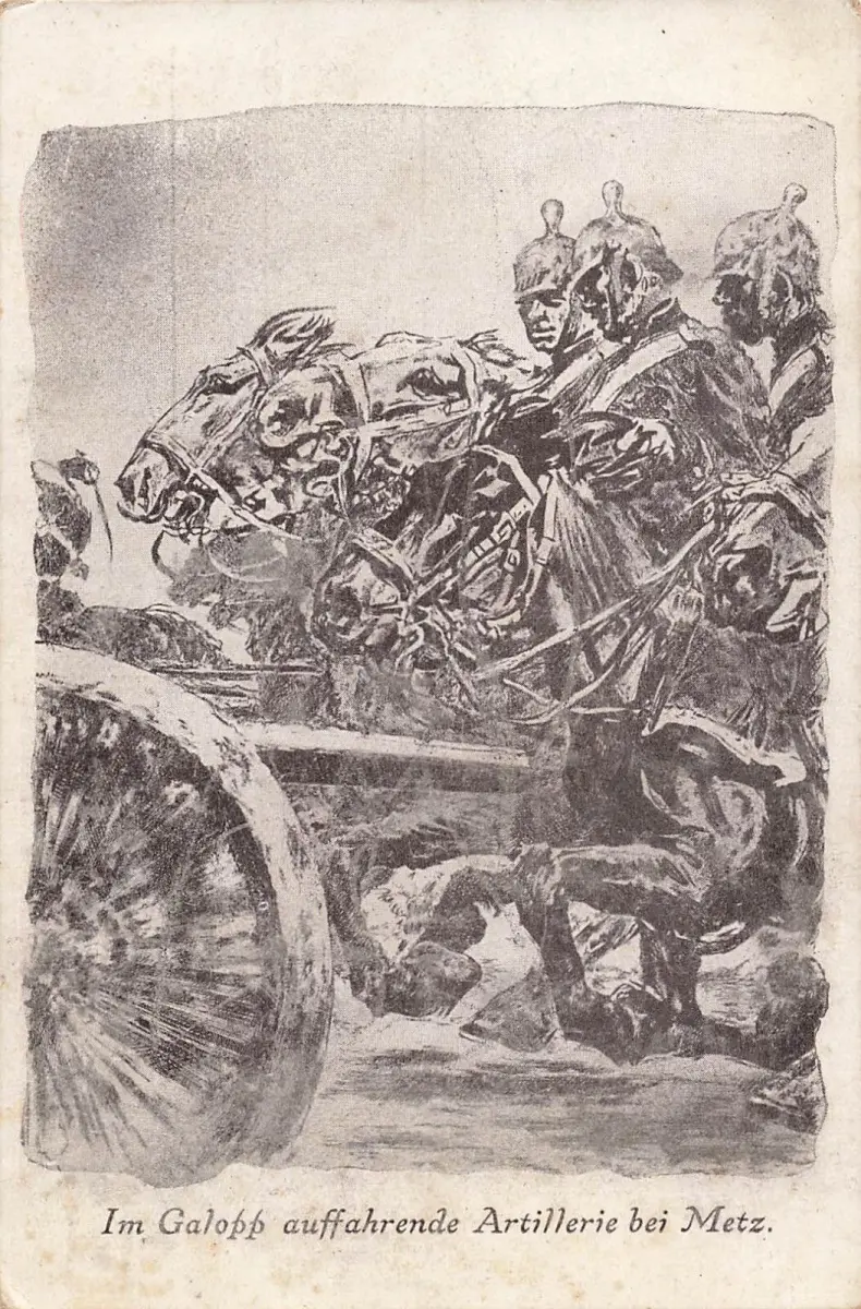 Im Galopp auffahrende Artillerie bei Metz Postkarte AK
