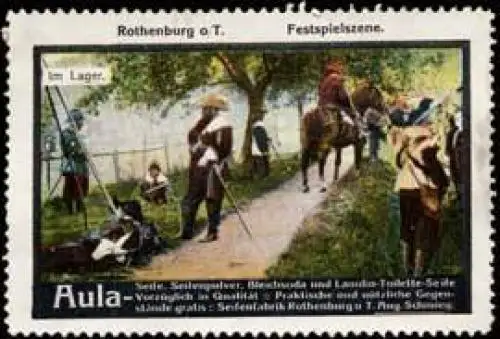Festspielszene, Aula - Seife, Seifenpulver, Bleichsoda und Lanolin - Toilette - Seife vorzüglich in Qualität - Praktische und nützliche Gegenstände gratis , Größe/Zustand: 5x7 , guter Zustand, Original alte Reklamemarke die seinerzeit für die Werbung benutzt wurde