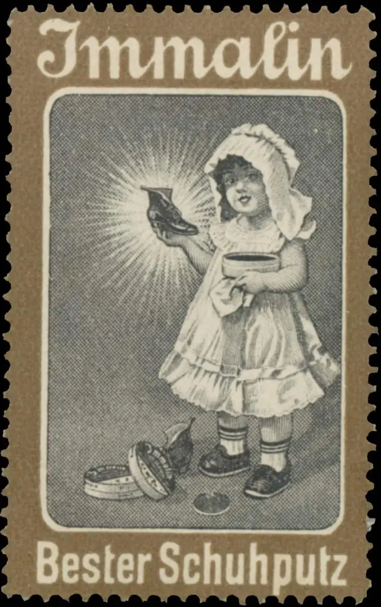 Kind mit Schuhcreme, braun, Größe/Zustand: 5x3 , guter Zustand, Original alte Reklamemarke die seinerzeit für die Werbung benutzt wurde