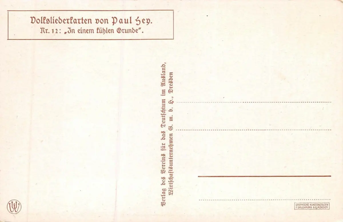 "In einem kühlen Grunde" Nr. 12 Paul Hey Volkslieder Postkarte AK