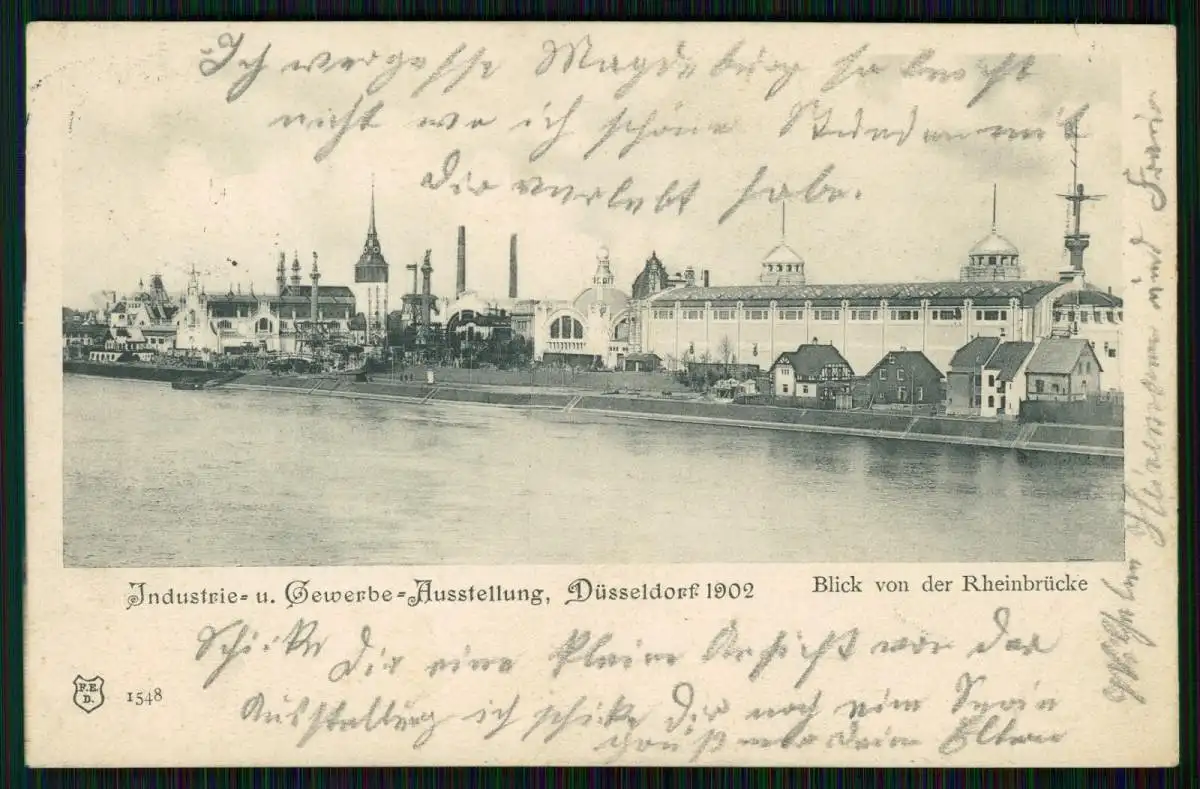 Industrie u. Gewerbe-Ausstellung Düsseldorf 1902 gel. Blick von der Rheinbrücke