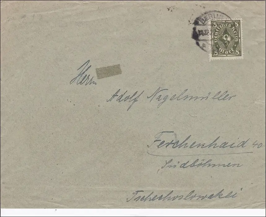 Inflation: Brief von Berlin in die Tschecheslowakei 1922, MiNr. 229 EF