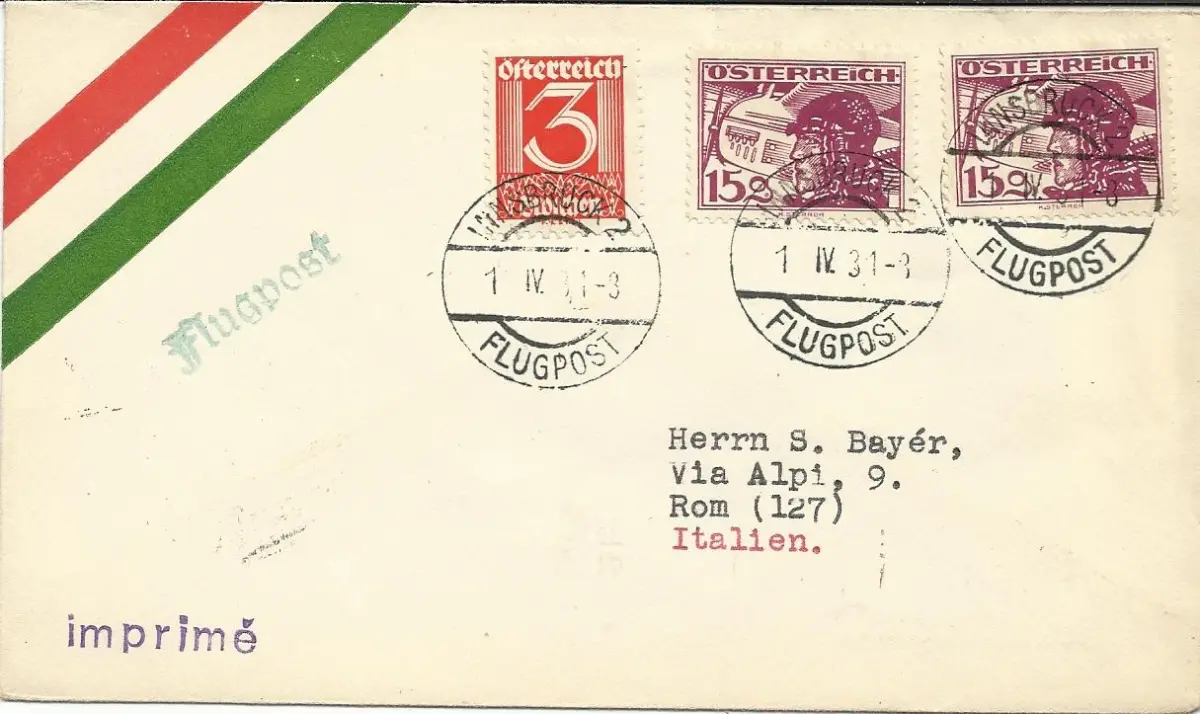 Innsbruck/Rom vom 1.4.31 - Aerogramm mit Flug - Innsbruck/Rom vom 1.4.31 - Aerogramm mit durchgeführtem Flug der A.L.I. (Lang Nr. 2351) - Ungewöhnlich, nur 20 transportiert - Kat. 250 n. 322/5