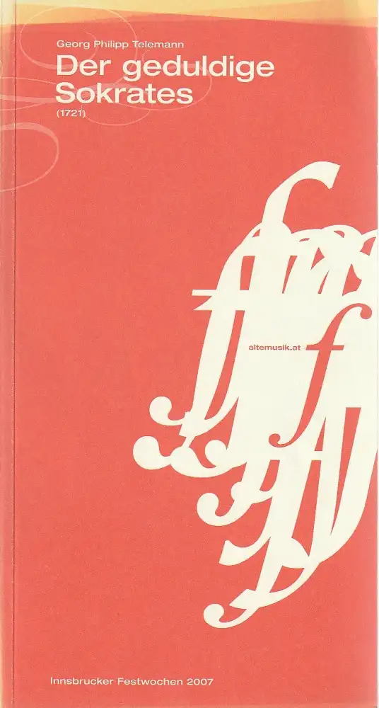 Innsbrucker Festwochen der Alten Musik, Sarah Wilson, Francis Hüsers, Carsten Hinrichs: Programmheft Georg Philipp Telemann DER GEDULDIGE SOKRATES Premiere 12. August 2007.