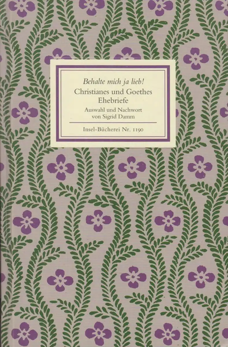 Bemerkungen: Zustand: Einband etwas berieben // Christiane und Johann Wolfgang Goethe haben achtundzwanzig Jahre gemeinsam gelebt, achtzehn Jahre in freier Liebe, zehn als Eheleute. Aus den Briefen, die Christiane und Goethe wechselten, hat Sigrid Damm eine Auswahl zusammengestellt, die ein authentisches Bild der vielgeschmähten Partnerschaft gibt. Sie zeigt die Nähe beider, in der Liebe wie im Alltag, ihr Zärtlichkeit füreinander..