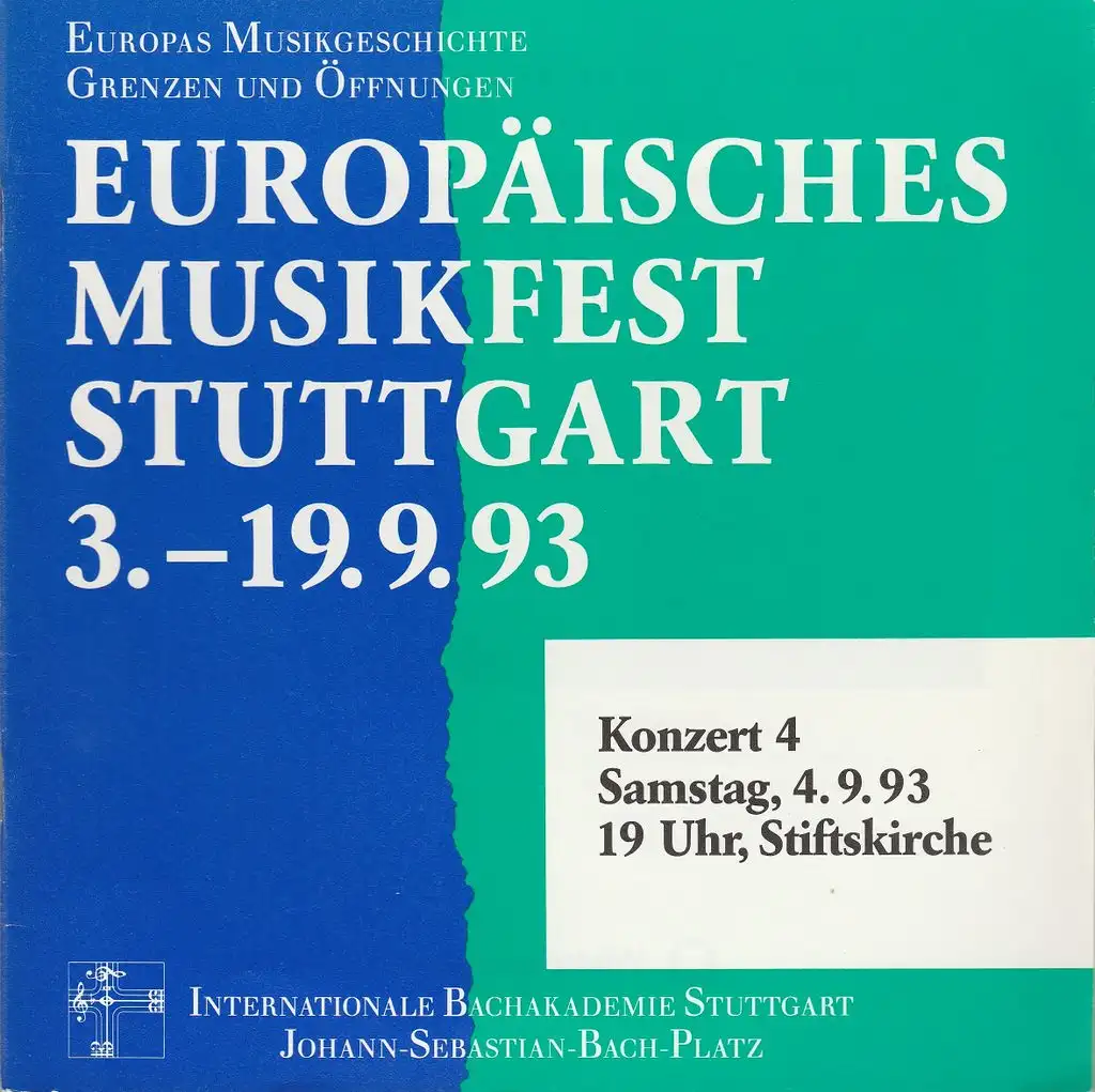 Internationale Bachakademie Stuttgart, Norbert Bolin, Felicitas Cziommer: Programmheft EUROPÄISCHES MUSIKFEST STUTTGART 3. -19.9.1993 KONZERT 4 04.09. 1993 Sitftskirche.