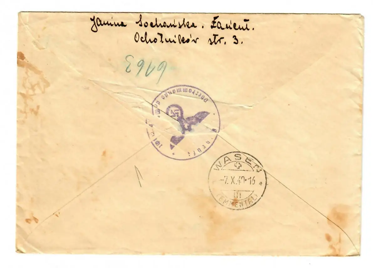 Interniertenpost GG: R-Brief portogerecht nach Wasen von Lancut, 2x Zensur