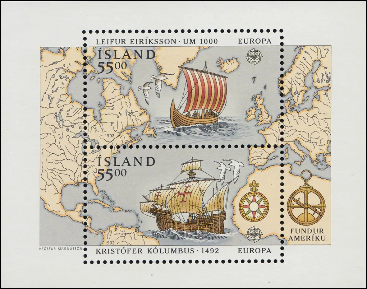 Island Block 13 Europaunion CEPT: Entdeckung von Amerika 1992, ** / MNH