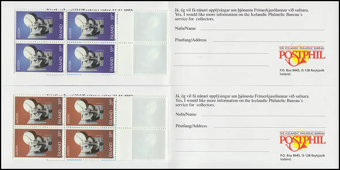 Island Markenheftchen 826-827 Europa, MH-Paar ** postfrisch **