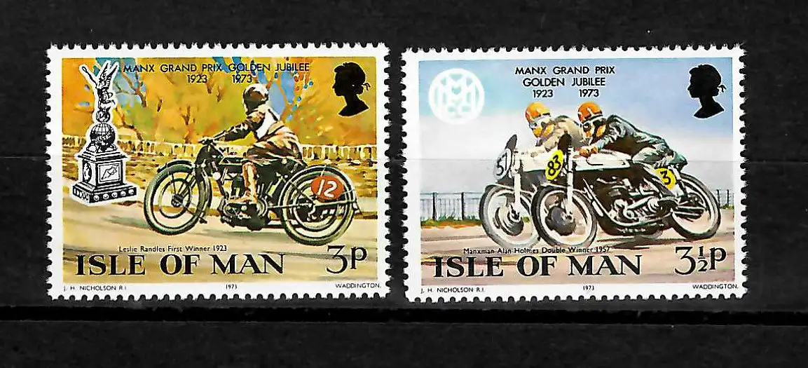 Isle of Man: 2 Marken 50 Jahre Motorradrennen, postfrisch