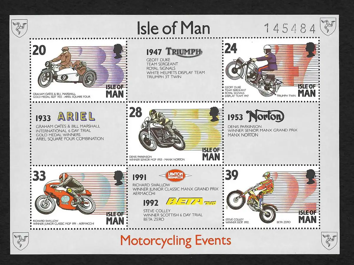 Isle of Man: Motorradsport, Fahrer und ihre Maschinen, Block postfrisch