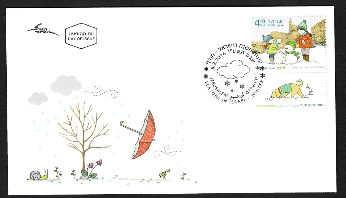 Israel 2016: Winter - Schneemann, Hund, Seasons, FDC