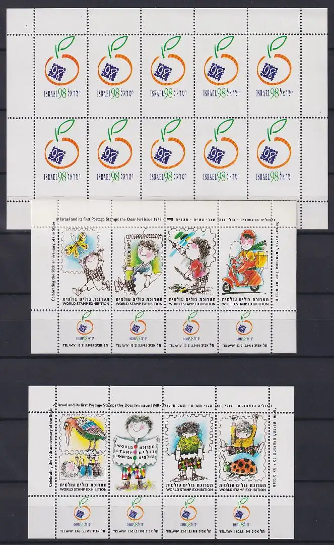 Israel 3 Vignettenblocks postfrisch Briefmarkenausstellung 1998 #OD323