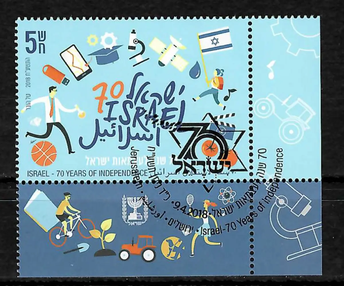 Israel: 70 Jahre Unabhängigkeit, 70 years of independence, gestempelt