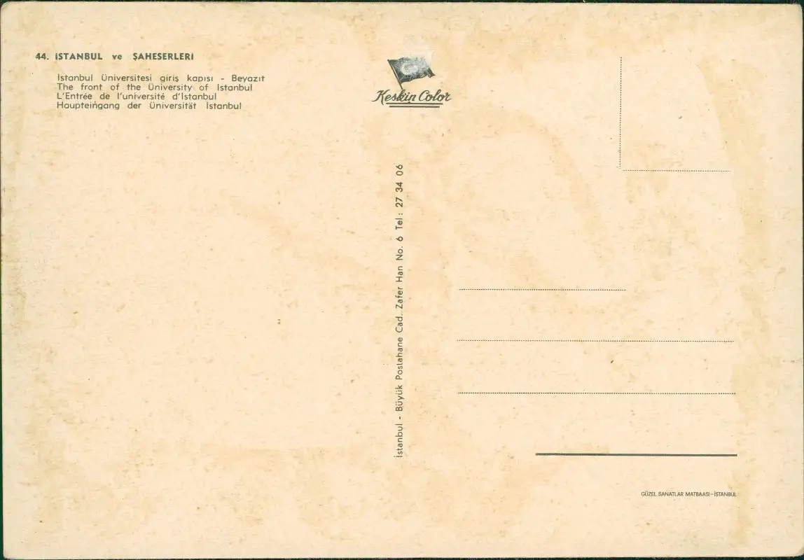 Istanbul Constantinople ve ŞAHESERLERİ Üniversitesi giriş kapısı Beyazıt 1970