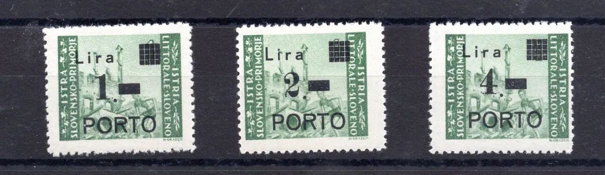 Istrien Occ. Jugoslawien Steuermarken Nr.8a/10/a Vollgummi - Istrien Jugoslawische Besetzung - Steuermarken Nr. 8a/10a drei Werte mit Rundpunkt statt rechteckig - Kat. euro 160 Cod. 907/L