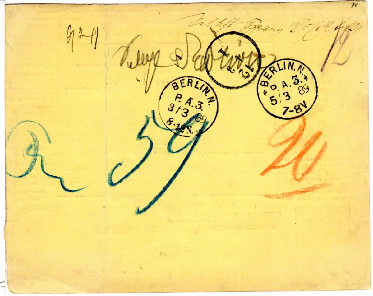 Franko-Paketkarte f. eine Wein-Sendung m. Berlin-K2 GÜTERVERWALTUNG. Weitere Stempel rückseitig.