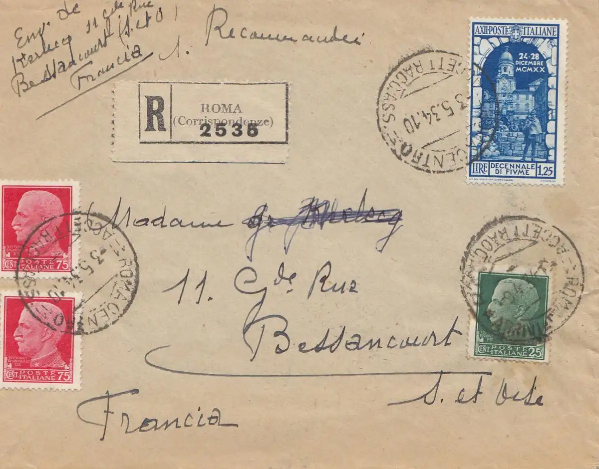 Italien: 1934: Roma asl Einschreiben nach Frankreich