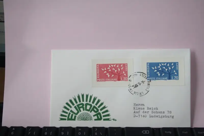 Die geschnittenen, ungezähnten Marken, von der Originalvorlage abgenommen und in den Originalfarben gedruckt, stammen aus dem Ministerblatt. Deshalb biete ich sie als F a k s i m i l e an. Die Marken auf Brief wurden in Finale Emilia gestempelt und bieten eine interessante und schöne Bereicherung für den großen CEPT-oder Italien-Sammler.