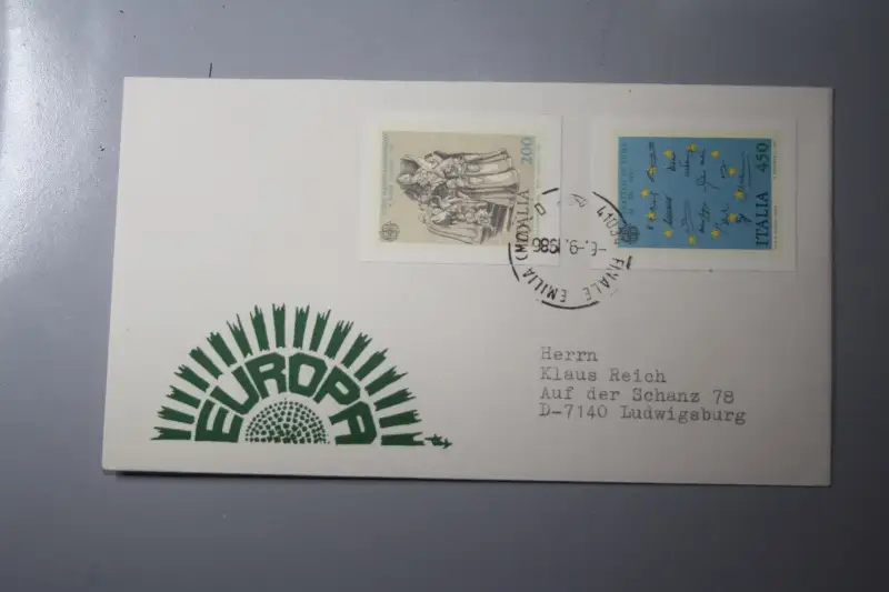 Die geschnittenen, ungezähnten Marken, von der Originalvorlage abgenommen und in den Originalfarben gedruckt, stammen aus dem Ministerblatt. Deshalb biete ich sie als F a k s i m i l e an. Die Marken auf Brief wurden in Finale Emilia gestempelt und bieten eine interessante und schöne Bereicherung für den großen CEPT-oder Italien-Sammler.