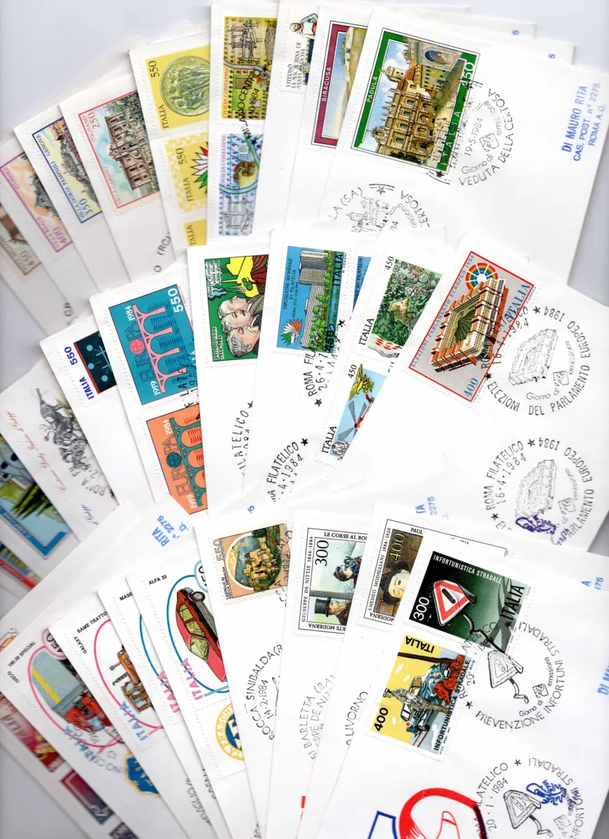 Italien 1984 kompletter Jahrgang auf Umschlag FDC Venetia - Reisen Sie mit Annullierung der Ankunft - Listenpreis des Hauses Euro 95,00 Cod. 1702/VEN