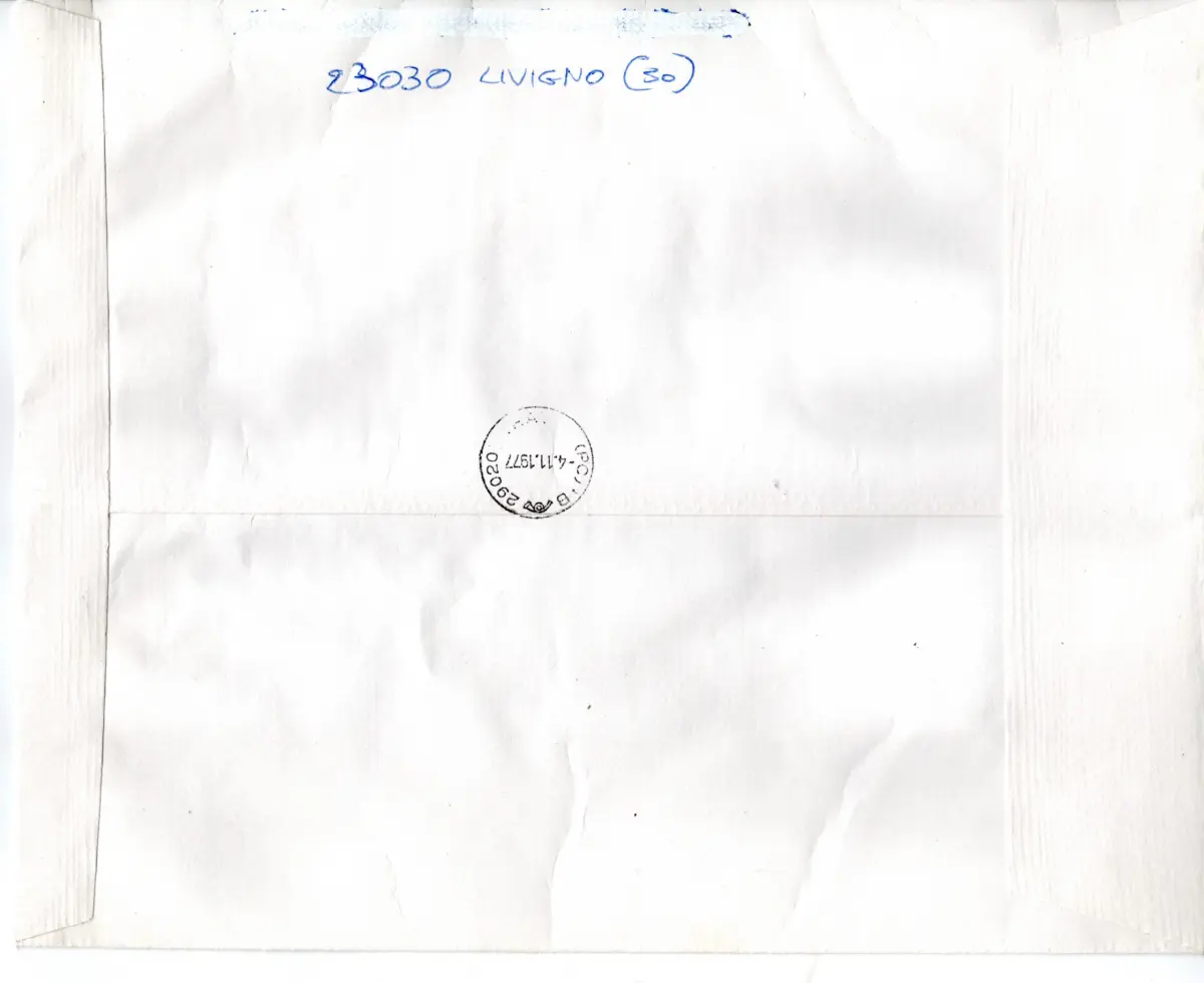 Italien '76 Gebrauchter Einschreibenbogen BUSTA - Italia '76 Zettel mit der schwarz-weißen Reproduktion der fünf Werte der Serie, der per Post auf großformatigem Einschreiben (Adresse gelöscht) verwendet wird Interessante postalische Verwendung dieser Sonderausgabe der Polygraphie Nr. 497/6