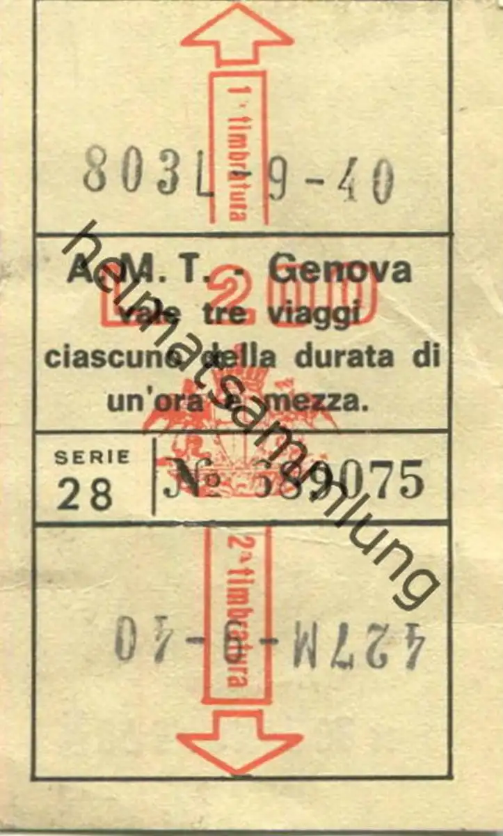 Italien - A.M.T. Genova - Fahrschein