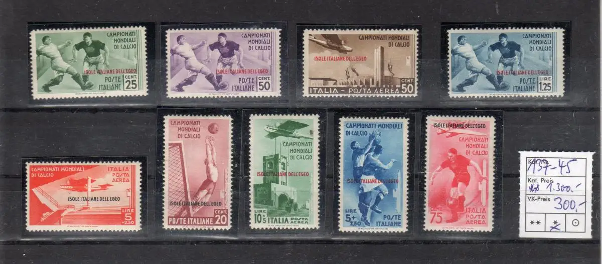 Italien, Ägäische Inseln, Fußball-Weltmeisterschaft Mi.-Nr.137-145,ungebraucht.