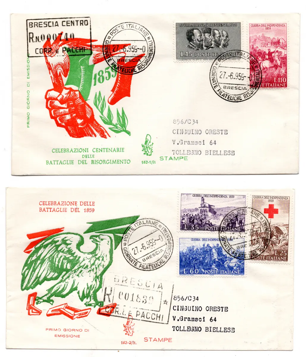 Italien FDC Venetia 1959 Unabhängigkeit gereist Racc. für Italien Italien Italien 1959 Unabhängigkeit auf Umschlag FDC gereist Racc. für Italien mit Annullierung der Ankunft Annullo Risorgimentali Days Cod. 473/Venetia