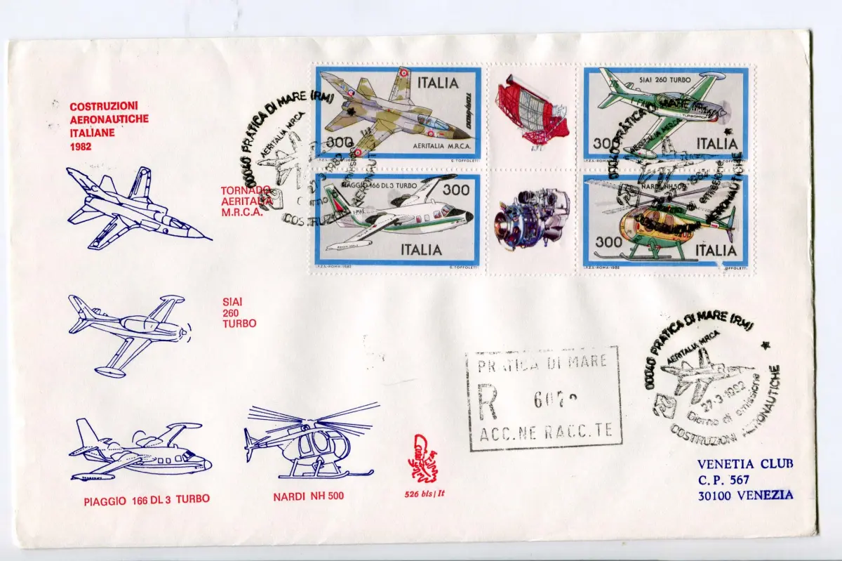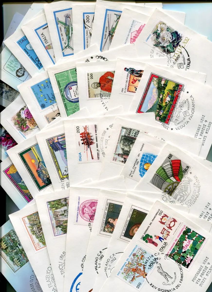 Italien FDC Venetia 1982 Kompletter Jahrgang Italien 1982 Kompletter Jahrgang auf Umschlag FDC 31 Umschläge, Teil gereist Einschreiben mit Annullierung der Ankunft - in gutem Zustand - Cod. 370 / Venetien