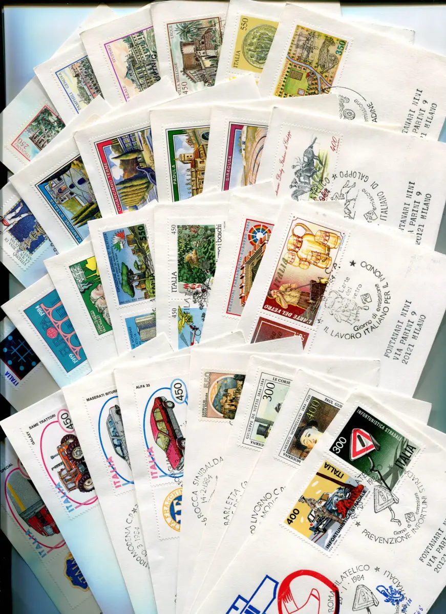 Italien FDC Venetia 1984 Kompletter Jahrgang Italien 1984 Kompletter Jahrgang auf Umschlag FDC 28 Umschläge, Teil gereist Einschreiben mit Annullierung der Ankunft - in gutem Zustand - Cod. 372 / Venetien