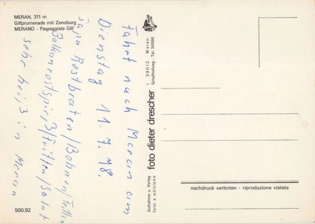 Ich hatte die Rechnung sofort als Vorkasse bezahlt, aber keine Zusendung der Karte erhalten. Trotz Nachfrage keine Rückmeldung bzw. Erklärung. Da es sich zum Glück nur um 1,70 € handelt, ist die Sache für mich erledigt, ärgerlich, aber zu verkraften. Mit den drei anderen Karten, die ich bestellt hatte, hat alles wunderbar geklappt.