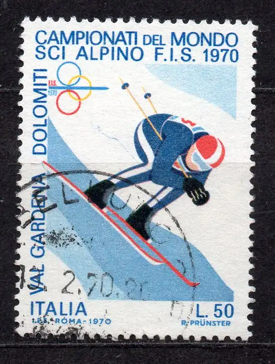 Italien, Mi-Nr. 1303 gest., Alpine Skiweltmeisterschaften in Gröden (Val Gardena)