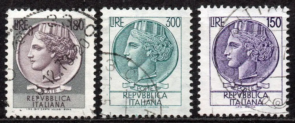 Italien, Mi-Nr. 1350, 1369 + 1522 gest., Italia turrita
