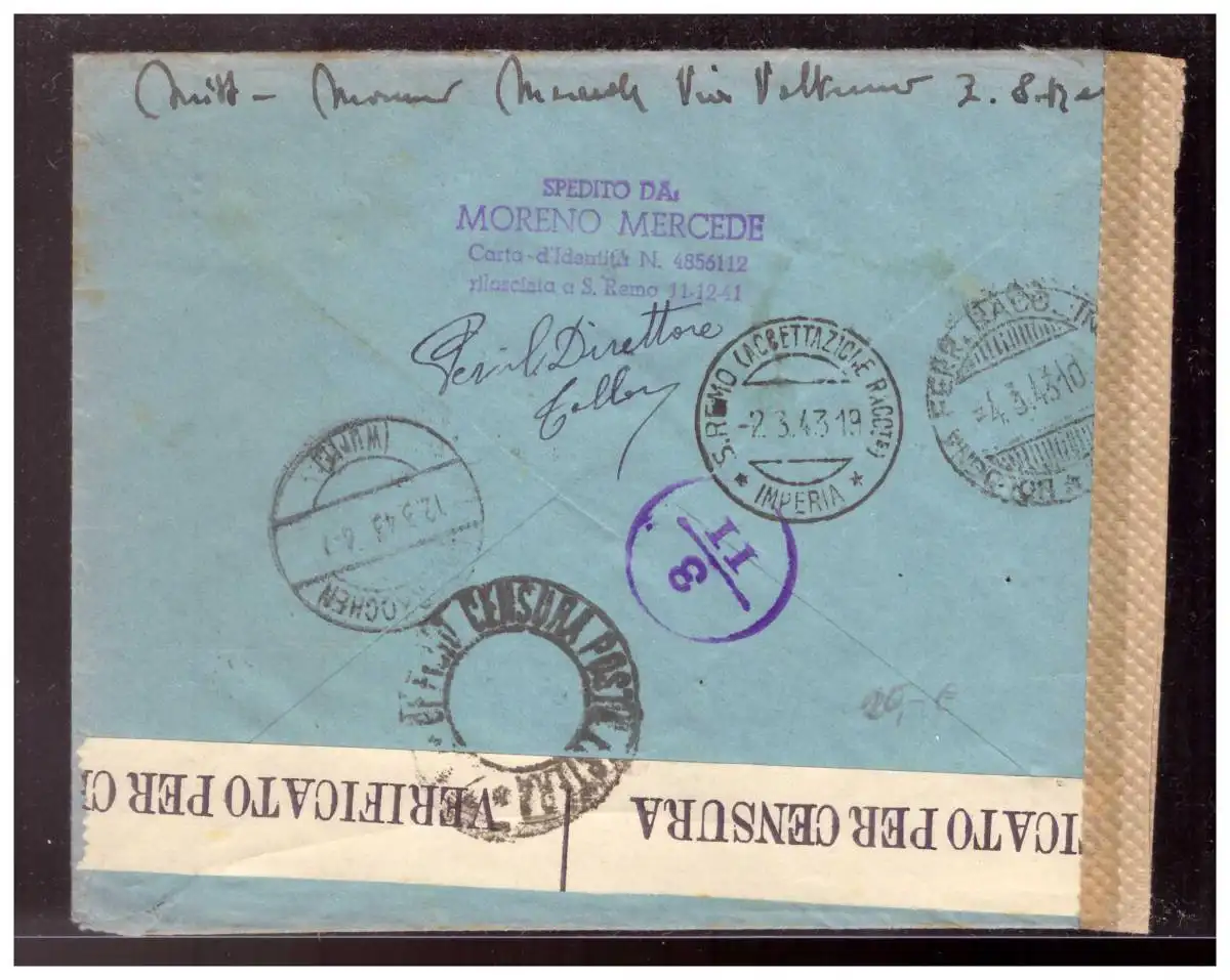 Italien (022523) Einschreiben mit Doppel- Zensur Italien und OKW gelaufen San Remo nach Neukochen 2.3.1943