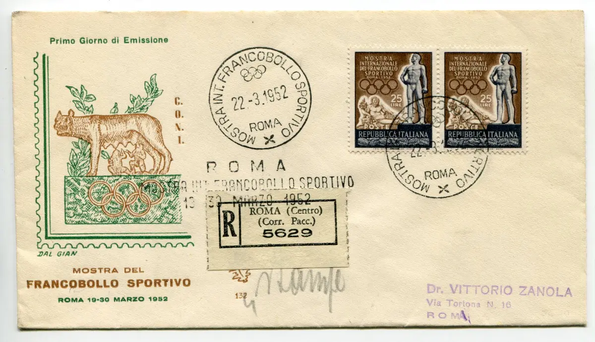 Italien Sportmarke auf FDC Venetia Einschreiben Sportmarke Nr. 684 Paar auf Einschreiben mit Ankunftsstornierung - Cod. 390/8
