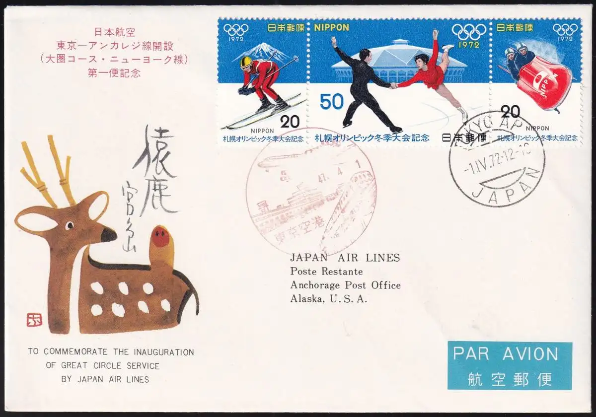 JAPAN 1972 JAL FIRST FLIGHT TOKYO - ANCHORAGE - ROUTE