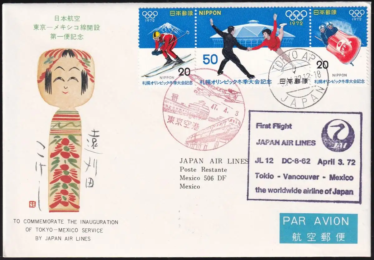 JAPAN 1972 JAL FIRST FLIGHT TOKYO - VANCOUVER - MEXIKO