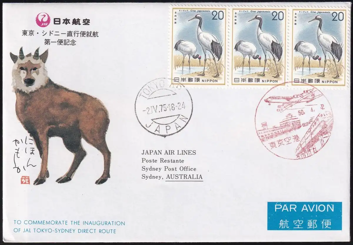 JAPAN 1975 JAL FIRST FLIGHT TOKYO - SYDNEY - ROUTE