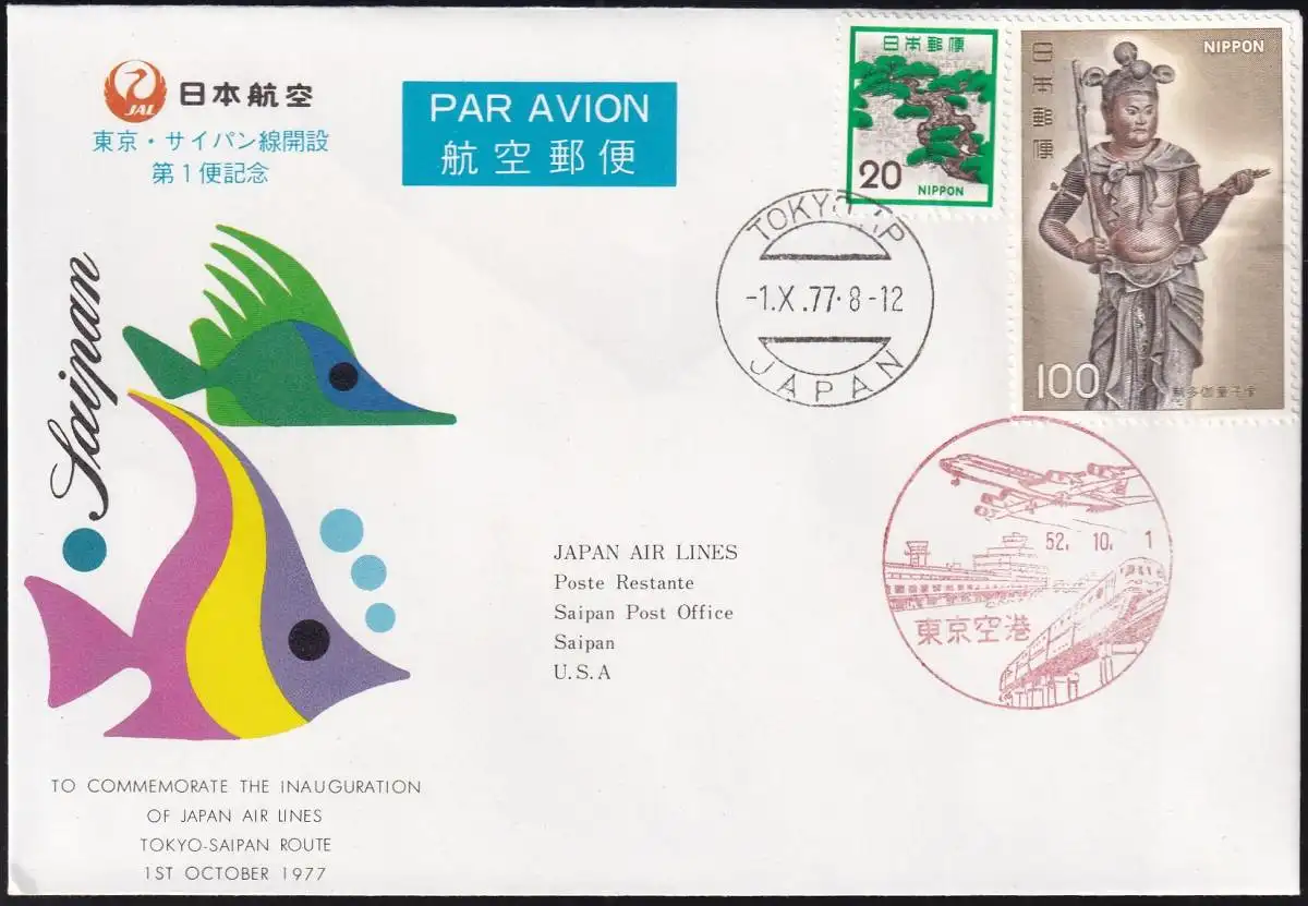 JAPAN 1977 JAL FIRST FLIGHT TOKYO - SAIPAN - ROUTE