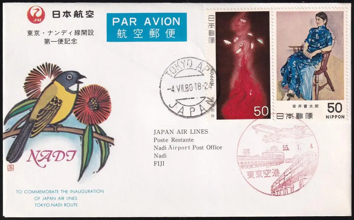 JAPAN 1980 JAL FIRST FLIGHT TOKYO - NADI - ROUTE