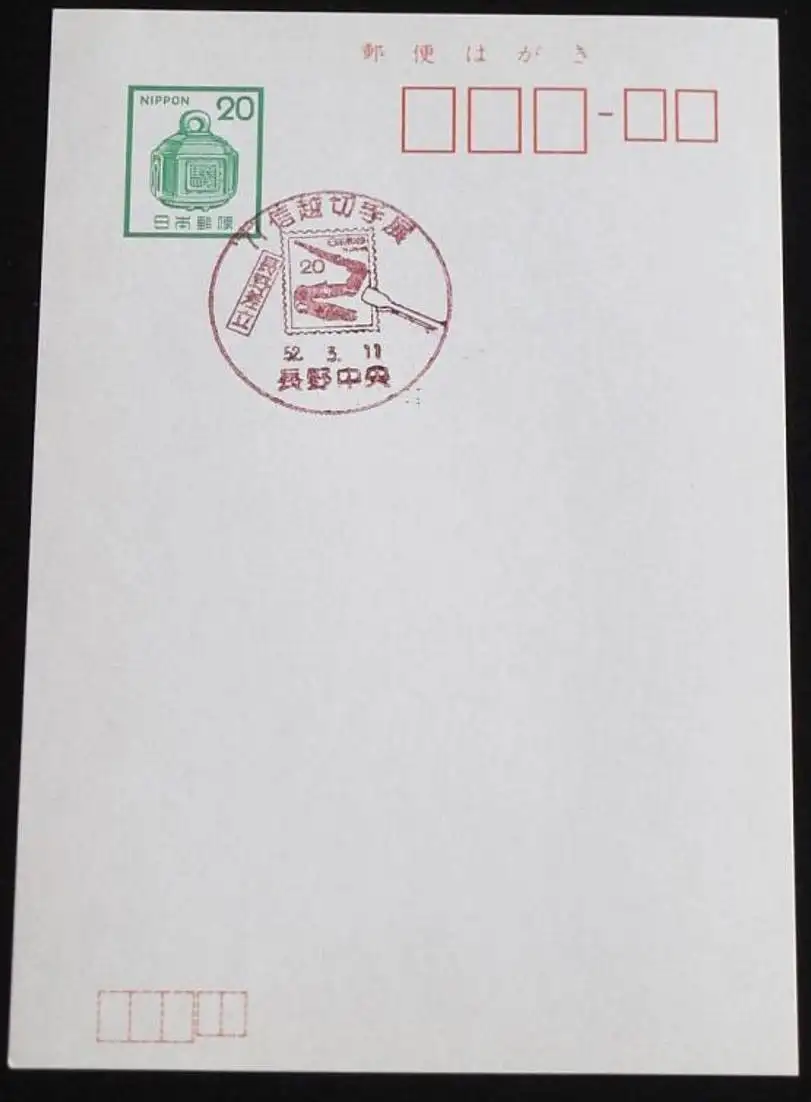 JAPAN GANZSACHE POSTKARTE mit Sonderstempel 11.03.1977 BRIEFMARKENAUSSTELLUNG 52.03.11