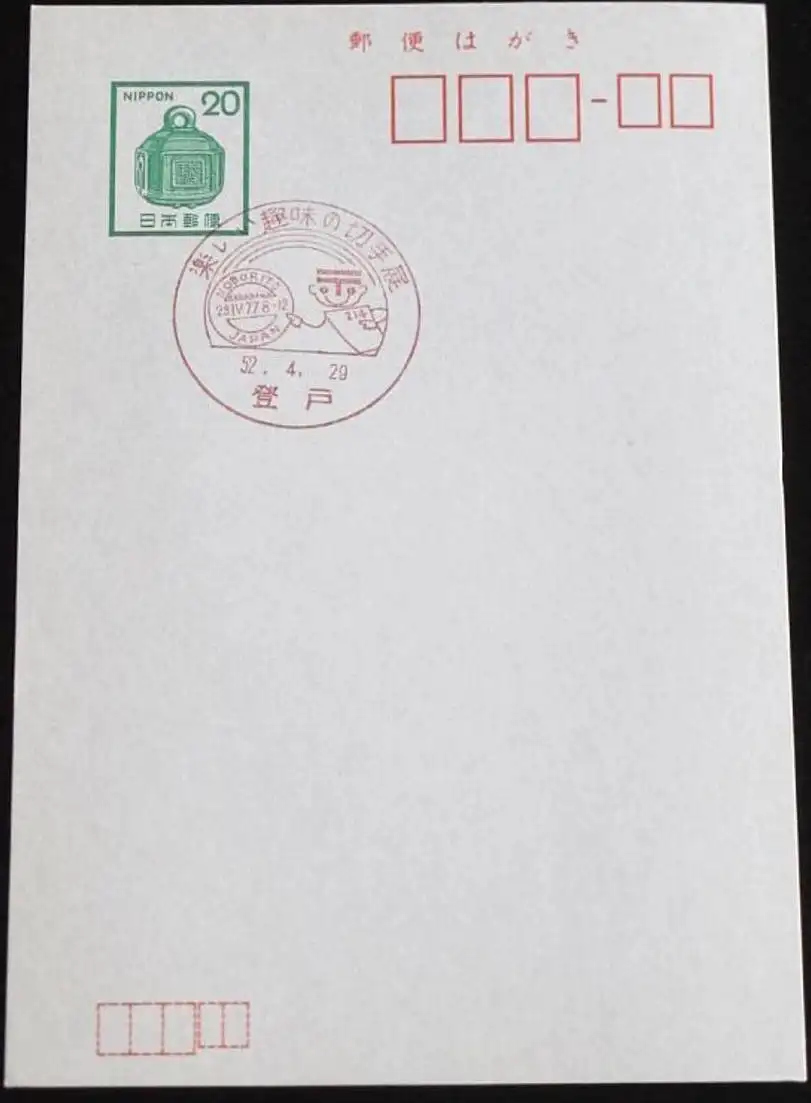 JAPAN GANZSACHE POSTKARTE mit Sonderstempel 29.04.1977 Briefmarkenausstellung 52.04.29