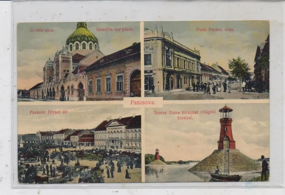 JUDAICA - SYNAGOGE PANCSOVA / Serbien, Jüdische Bevölkerung, Marktplatz, Donauleuchttürme, 1915, Verlag Kohn Samu