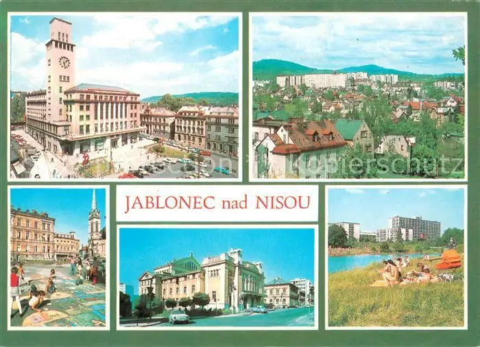 Jablonec_nad_Nisou Marktplatz Rathaus Stadtpanorama Wohnsiedlung Theater Kinder Strassenmalerei Jablonec_nad_Nisou postalisch nicht gelaufen nach 1965 Erhaltung siehe scans [FriedD77] Frierer
