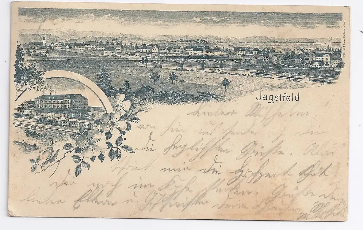 Jagstfeld, 1902 gebr. AK m. Eisenbahn Zug u. Brücke. #1130