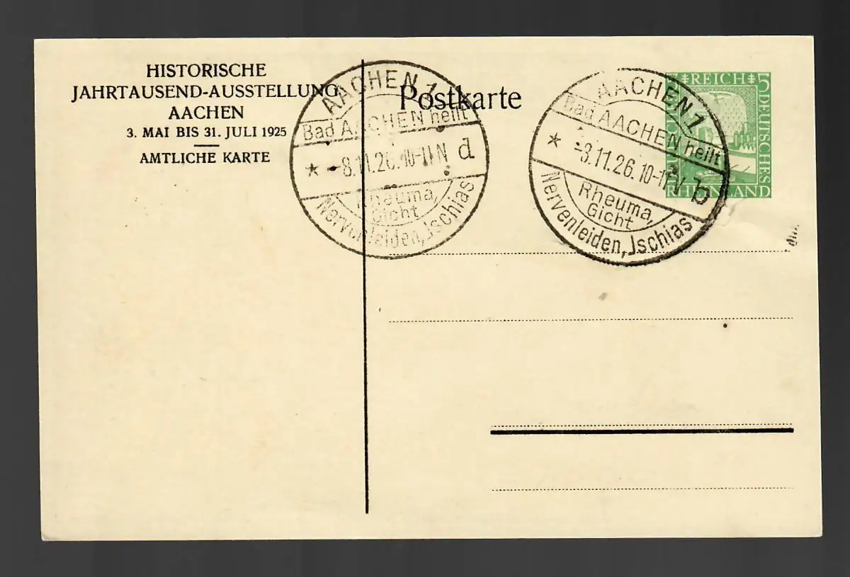 Jahrtausend Ausstellung Aachen Stempel b und d, Sonderstempel 1926 Rheuma, ..