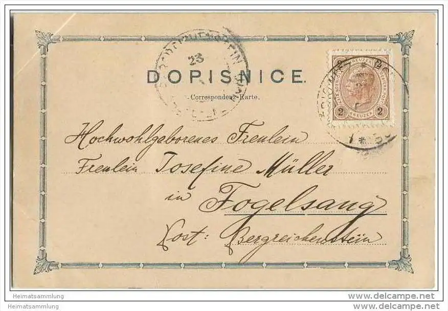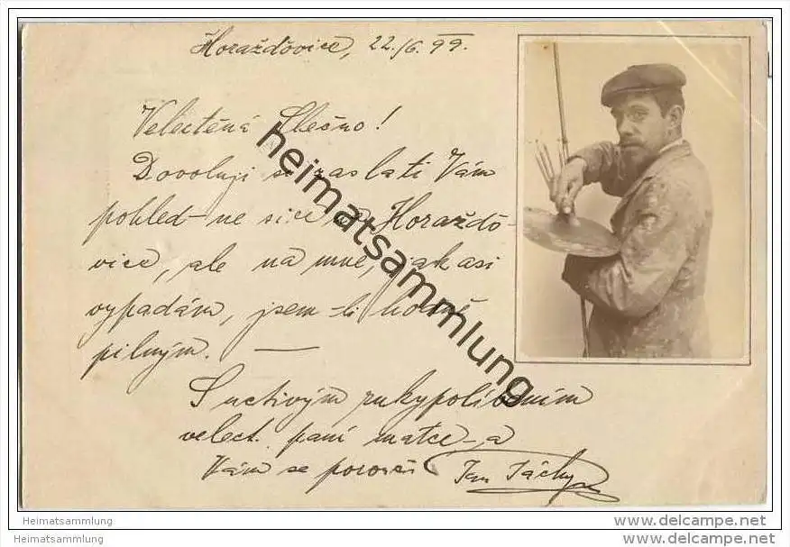Jan Jachym - Maler Horazdovice - eigenhändig geschriebene Karte mit Bild (G24524) gel. 1899