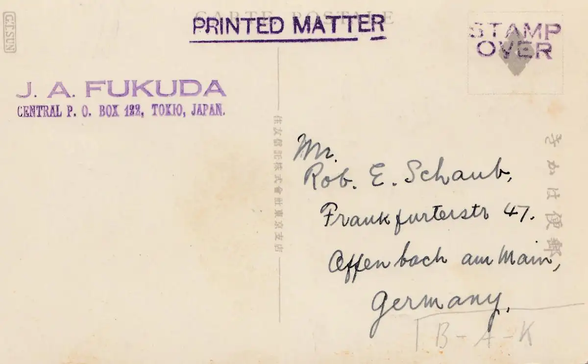 Japan 1925: post card Tokyo to Offenbach