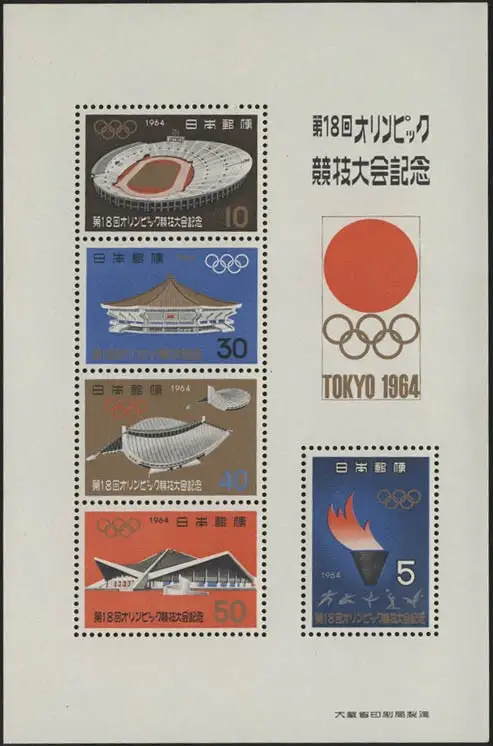 Japan Block 73 Olympia Tokio Sportstadien und Flamme 1964, Block **/MNH